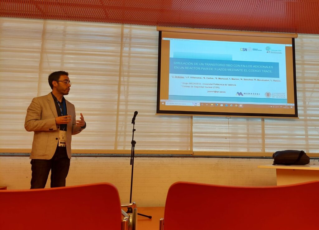 José Ordóñez presentó el trabajo «Simulación de un transitorio SBO con fallos adicionales en un reactor PWR de 3 lazos mediante el código TRACE» en la sesión 25-08 TERMOHIDRÁULICA (I).