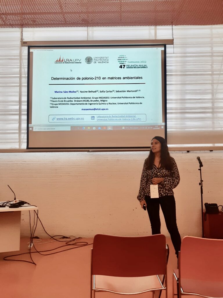 Marina Sáez Muñoz presentó el trabajo titulado «Determinación de polonio-210 en matrices ambientales» en la sesión 28-PROTECCIÓN RADIOLÓGICA (II).